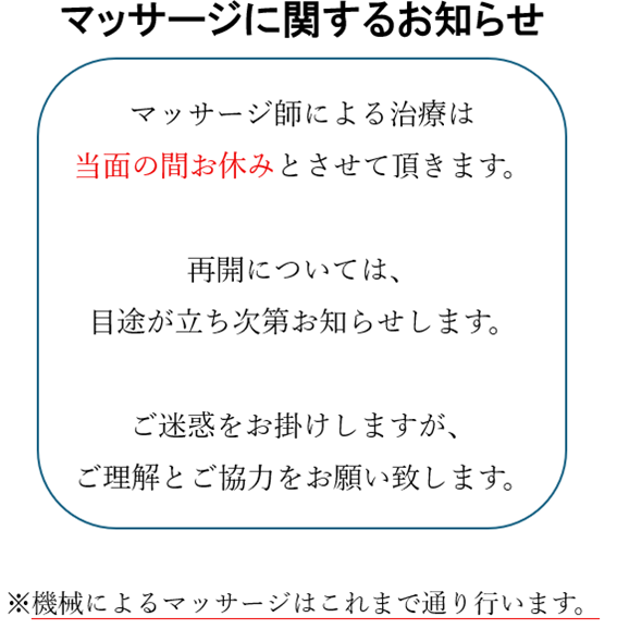 肩こり、腰痛、筋肉痛などの治療をされている患者様へ